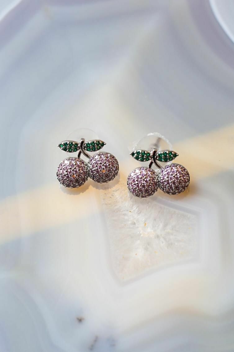 1129- Brinco Cherry Folinhas Verdes